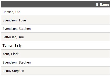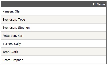 نکته :توجه کنید که این دستور نمیتواند تمام کارمندان را درنوروژ و آمریکا به صورت لیست در آورد همانطور که مشاهده میکنید ما در دو جدول بالا دو کارمند با نام های یکسان داریم اما هنگام لیست شدن فقط نام یکی از آنها نوشته شد این بدان معناست که عملگر UNION به صورت(DISTINCT) عمل میکند .(برای درک بهتر به قسمت DISTINCTدر بخش SQL مراجعه کنید)