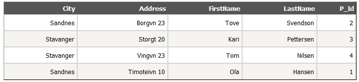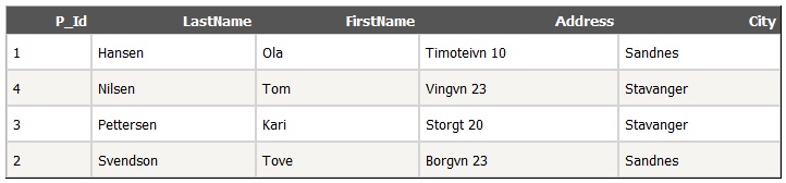 فرض کنید میخواهیم از جدول بالا لیست تمام افراد را بیرون بکشیم در حالی که میخواهیم این اسامی بر اساس نامشان مرتب شده باشند.